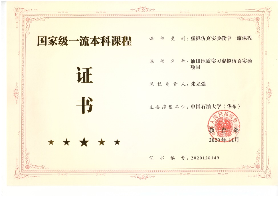 2019年3月,教育部公布2018年度国家虚拟仿真实验教学项目名单,全国共认定296个实验教学项目,MG冰球官网张立强教授负责的“油田地质实习虚拟仿真实验”项目获批。
