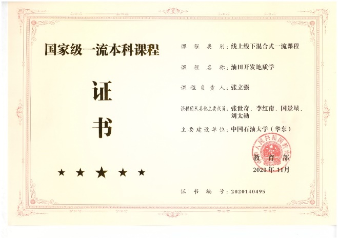 2021年6月,MG冰球官网张立强、张世奇、国景星、李红南、刘太勋、宋璠、张宪国、赵建华负责的《油田开发地质学》入选国家课程思政普通本科教育示范课程,授课教师入选国家课程思政教学名师和教学团队。