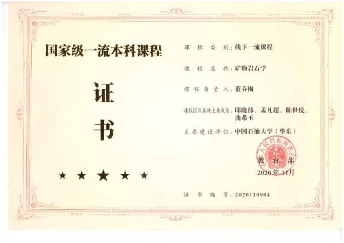 2020年11月,教育部公布首批国家级一流本科课程名单,MG冰球官网地震勘探原理、矿物岩石学、油气地质与勘探、油田开发地质学等4门课程入选。
