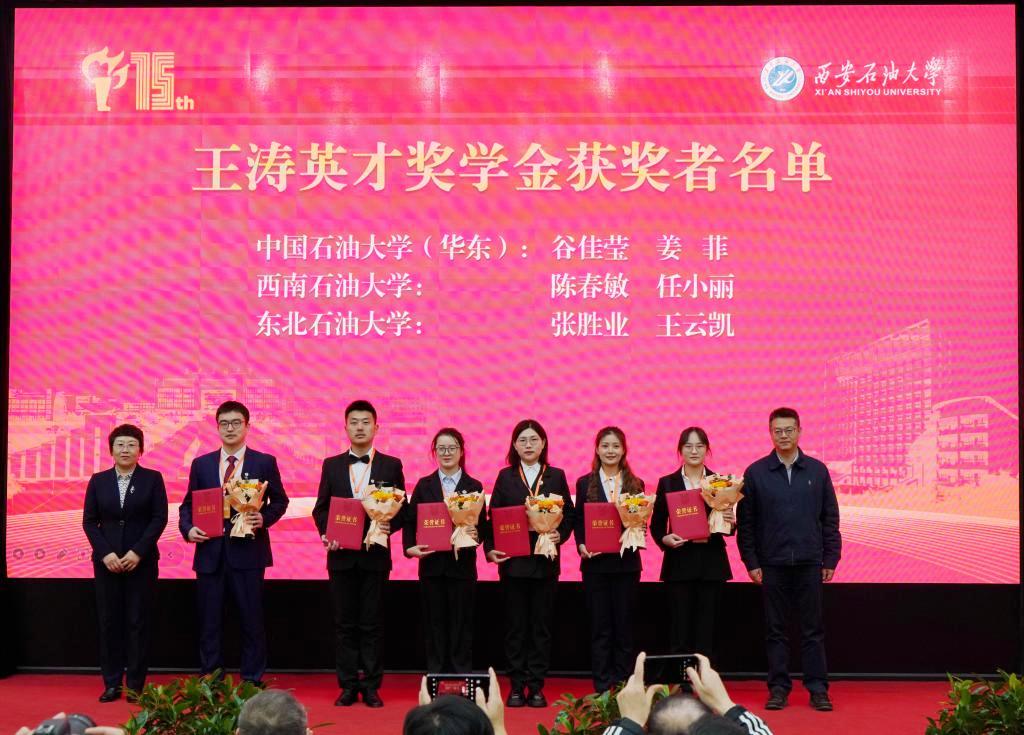 “王涛英才奖学金”由原石油工业部部长王涛先生于2008年创立,致力于培养德才兼备,具有“争雄、争气、争光”精神的创新型杰出人才,已覆盖9所石油高校、1所科研院所,累计表彰优秀学生241名,成为石油高等教育领域优秀的品牌项目,对传承石油精神、传播石油文化发挥着重要作用。我校共有1名博士生、1名硕士生、2名本科生和2名留学生获得本届王涛英才奖学金。