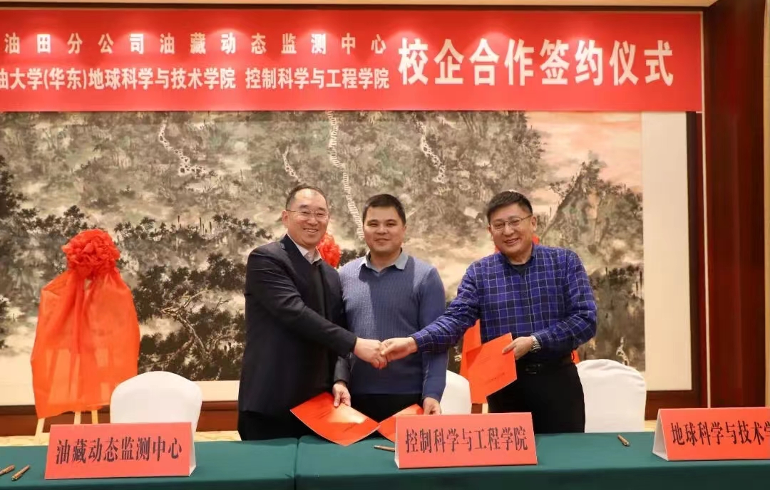 为加强校企合作,推进产学研融合,12月15日,MG冰球官网与胜利油田分公司油藏动态监测中心(以下简称“动态监测中心”)在胜利油田举行了全面合作协议签约仪式。动态监测中心党委书记、副经理李建荣,经理、党委副书记李洋,油田动态监测高级专家柴德民等企业领导和专家,以及MG冰球官网院长刘华、办公室主任王冠,控制科学与工程学院党委书记刘伟锋、副院长陈鸿龙等领导和专家共同出席签约仪式。动态监测中心李建荣书记主持会议。