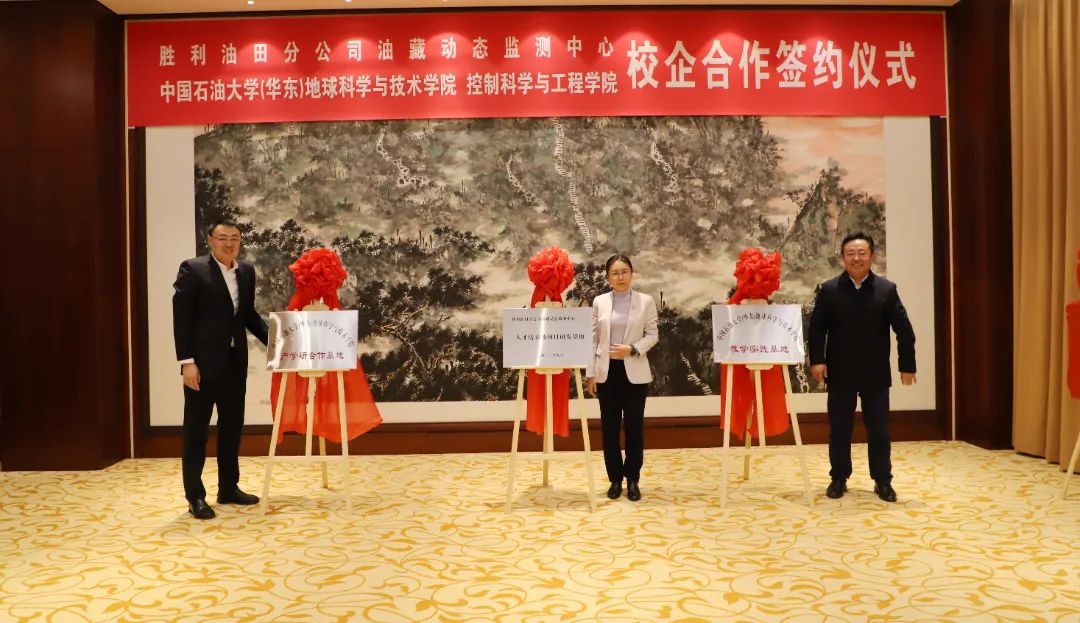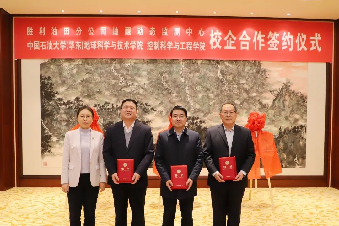 在签约仪式上,校企双方签署了全面合作协议并举行共建基地揭牌仪式,约定双方共建教学实践基地、产学研合作基地、人才培养及项目研发基地,明确了在人才培养、科技创新、技术研发等方面的合作机制和内容,为双方的合作提供了明确的指导和保障。双方现场还签署了合作项目意向书、党建联建协议,颁发校外指导教师和企业顾问聘书,标志着胜利油田分公司油藏动态监测中心与MG冰球官网全面合作正式启动。