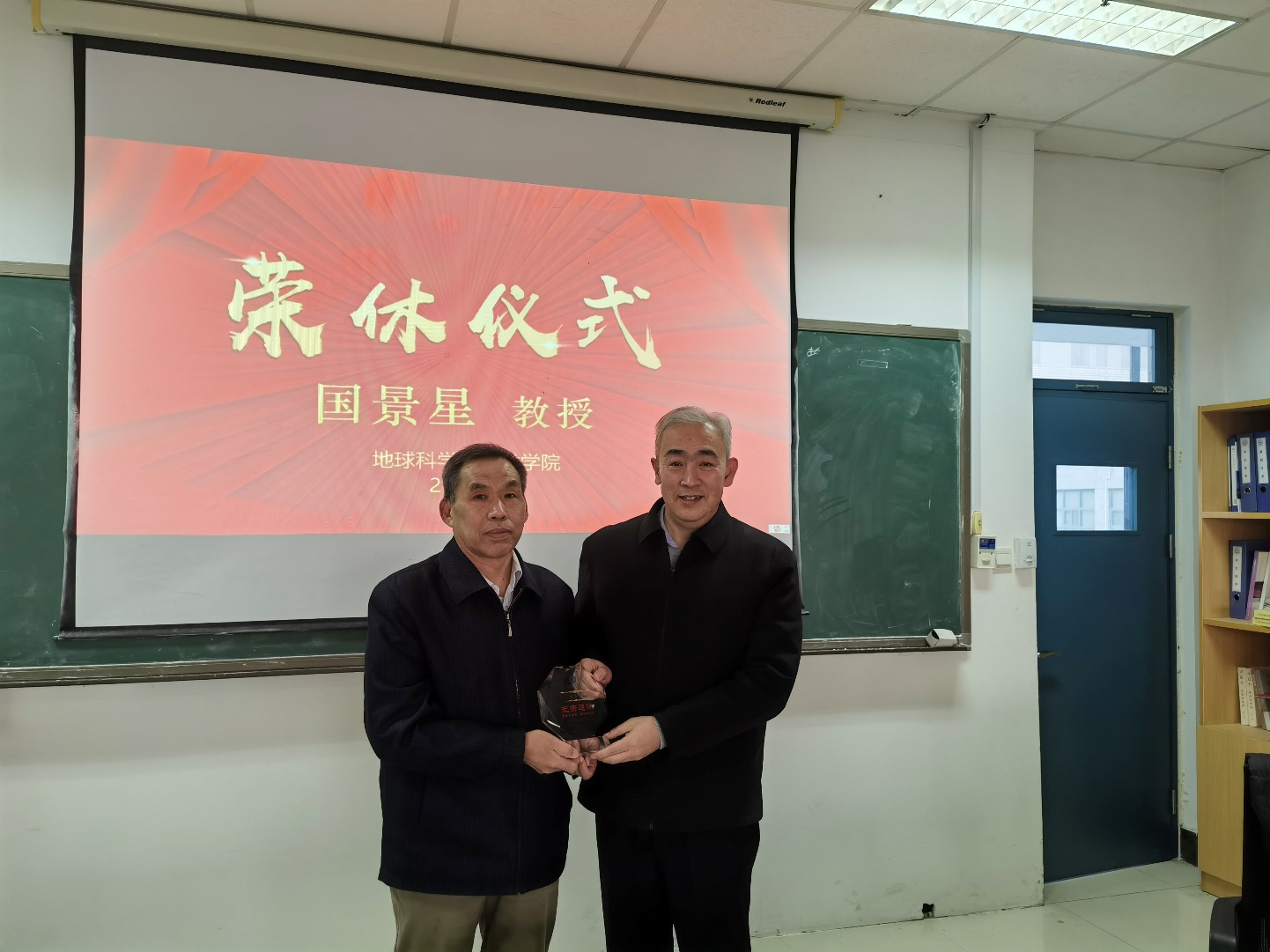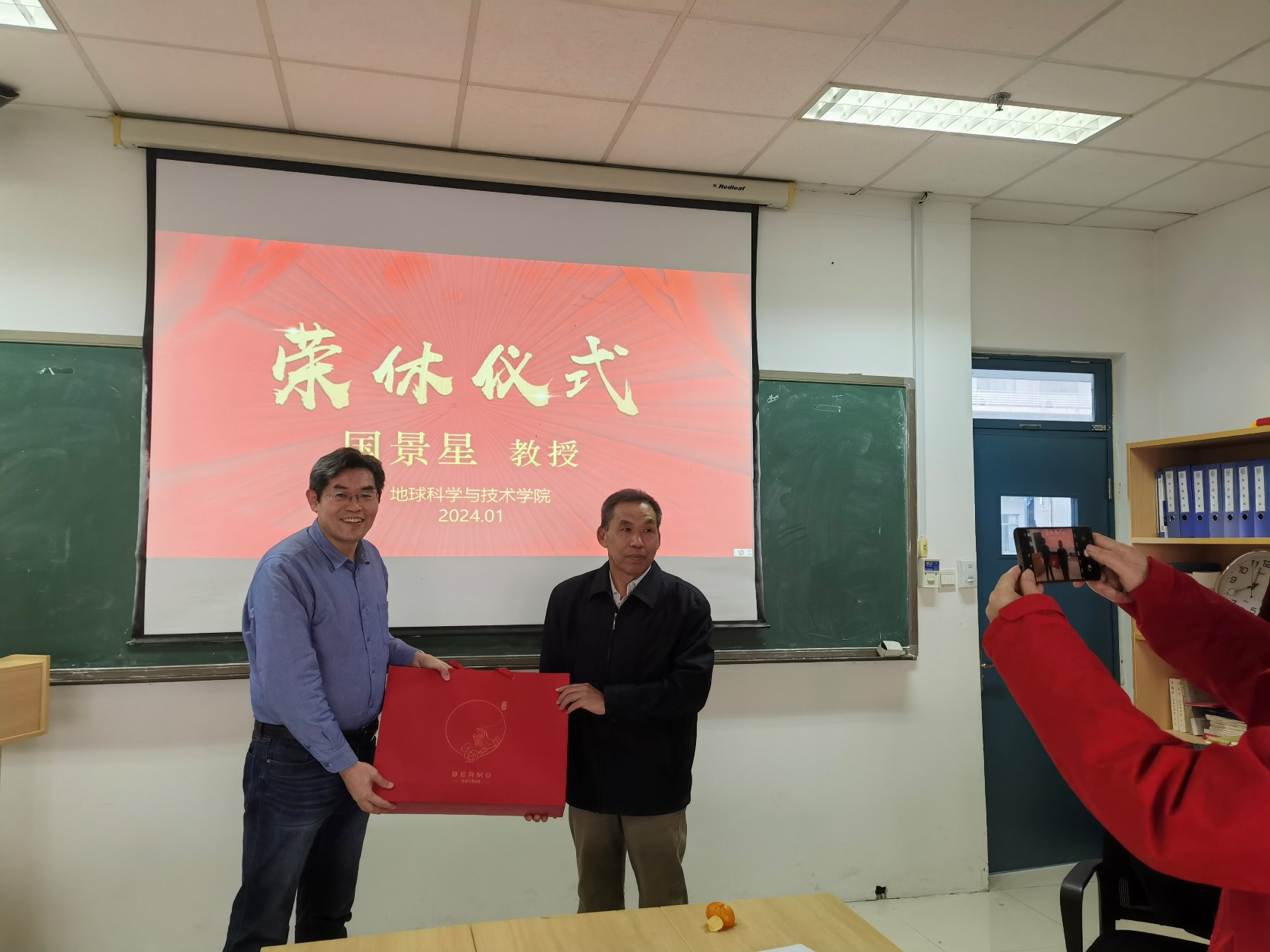 为树立尊师重教的良好氛围,加强教师思想政治教育,激励广大教职工继承优良传统,凝心聚力、潜心育人,2024年1月10日下午,学院举行国景星教授荣休仪式。学校党委常委、学院党委书记赵放辉,学校工会主席、原学院党委书记王德钊,学院工会主席张军华教授以及资源系党支部在校全体教师参加了活动,会议由资源系主任、党支部书记张立强教授主持。
