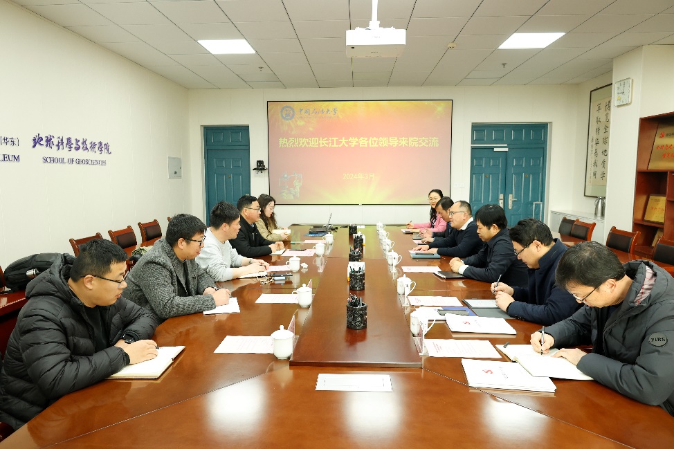 3月14日,长江大学地球物理与石油资源学院党委书记周俊一行来院调研交流。学院院长宗兆云、党委书记牛庆玮、副院长王冠、测井系党支部书记谭宝海、地球物理系党支部书记张凯、学院办公室主任郭雪娇参加座谈交流,座谈会由院长宗兆云主持。