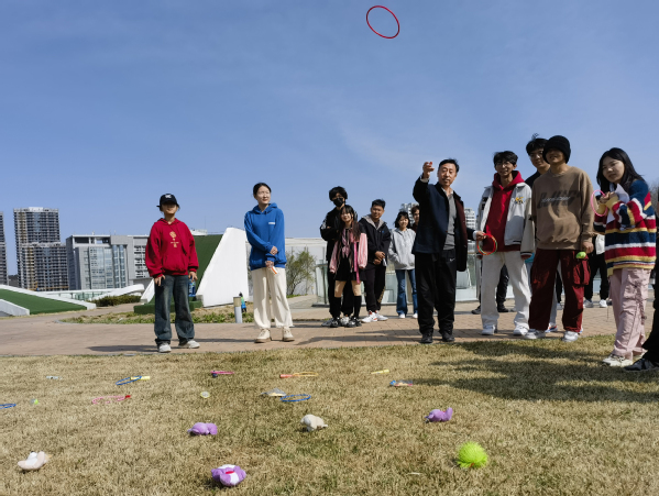 在趣味赛中,老师与学生一同体验丰富多彩的活动项目,感受冬去春来、微风拂面,在比赛中增强班级凝聚力。在活动的间隙,参加完比赛的学生们自发组织起沙包、踢毽子、踢皮球等趣味活动,重新回味起童年的游戏,现场欢笑声此起彼伏。