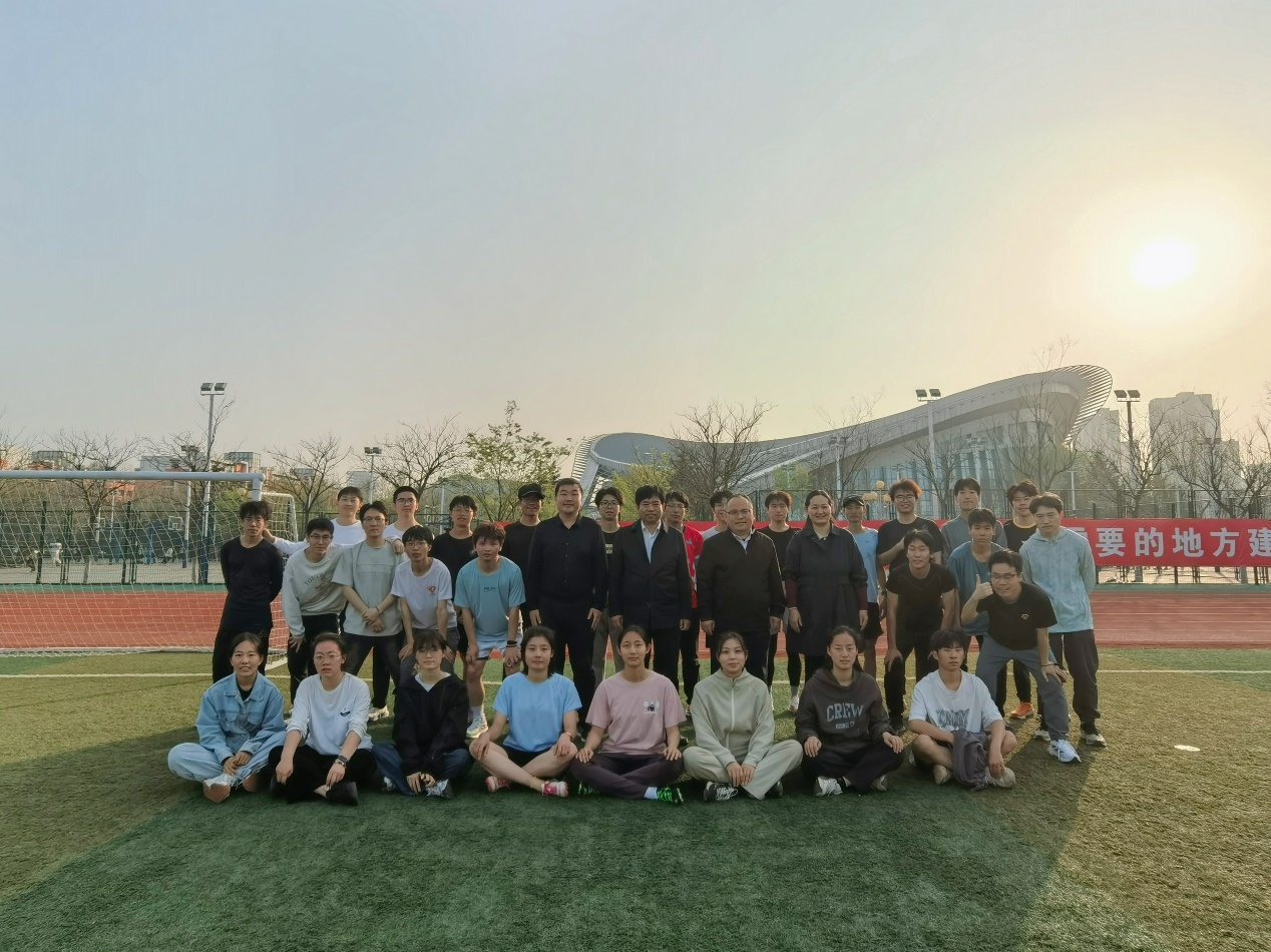 田径场上的运动员正在做跑步、高抬腿等热身运动,经过一个月的训练,MG冰球官网运动员各个项目的动作技巧、协调性、灵活性进步明显。在运动场上,学院领导与春训运动员进行了亲切的交谈,详细了解了大家的训练状态和身心状况,对所有参训人员在训练中展现出的朝气蓬勃、斗志昂扬的精神面貌予以充分肯定,并鼓励大家继续以饱满的热情对待春训。宗兆云详细询问了春训队后勤保障情况,他表示学院将提供更多的人力、物力、财力保障运动员训练,他要求运动员要坚持“安全第一”的原则,积极锻炼身体,努力拼搏,争取在今年的校运动会上取得优异成绩。牛庆玮感谢大家的付出与坚持,希望同学们合理安排训练强度、规范细化训练方法,聘请专业教练为大家讲解专业动作,科学备战、安全备战,全面提升身体素质和动作技能。郑珊珊提醒运动员们务必将安全问题放在首位,训练过程中注意身体状况,若有突发情况即刻停止训练并寻求帮助,避免在训练中受伤。最后,学院领导与在场师生合影留念。