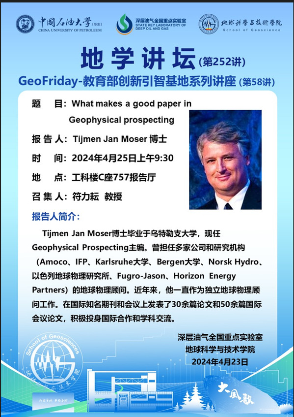 【地学讲坛第252讲】关于Tijmen Jan Moser 博士《What makes a good paper in Geophysical prospecting》学术报告的通知