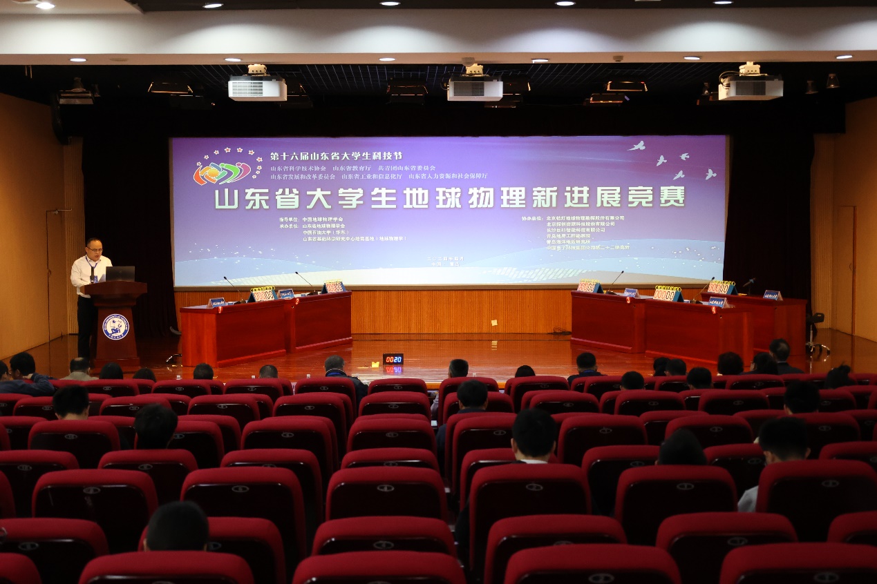 山东省大学生地球物理新进展竞赛是山东省科协、省教育厅、团省委、省发改委、省经信委、省人社厅联合主办的山东省大学生科技节的竞赛活动之一,旨在激励学生学习和运用地球物理知识的积极性和创造性,推动地球物理专业教育改革,提高地球物理人才培养质量,促进山东省内高校地球物理相关专业间的交流,探讨地球物理创新人才培养机制。本次比赛由中国地球物理学会指导,山东省地球物理学会、MG冰球突破官网网站和山东省基础科学研究中心培育基地(地球物理学)联合主办,北京桔灯地球物理勘探股份有限公司、北京探创资源科技股份有限公司、长沙巨杉智能科技有限公司、青岛地质工程勘察院、青岛海洋地质研究所和中国电子科技集团公司第二十二研究所等单位协办。