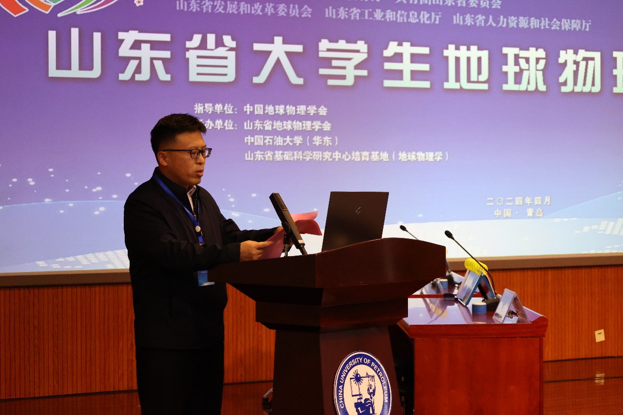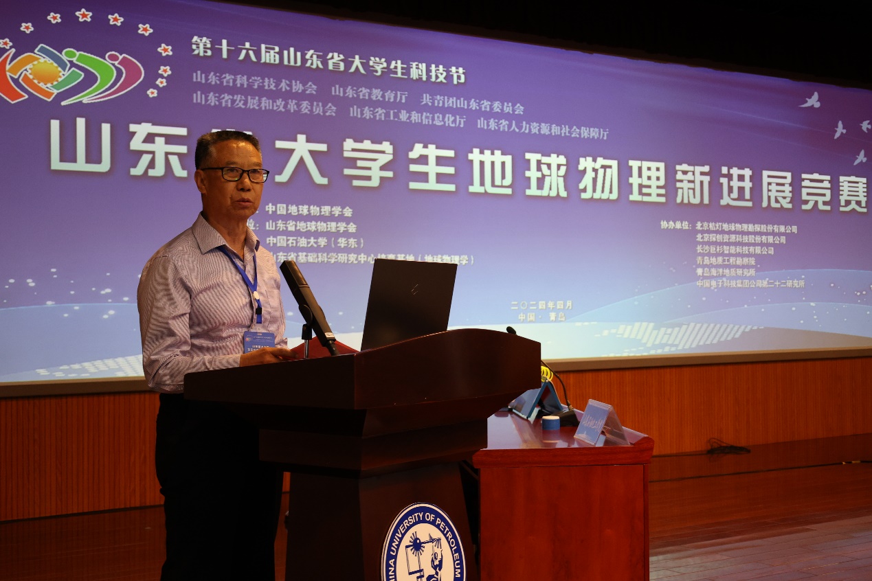 张善法代表山东省地球物理学会感谢各级单位对本次大赛的指导与支持,他指出,人才是富国之本,“为地球物理学子而助之,不亦乐乎”已成为山东省地球物理学会的社团文化。大学生地球物理新进展竞赛,旨在为各大高校、科研院所地球物理和其他相关专业学生间搭建一个实践、交流、创新的平台,希望利用此次竞赛,能够促进广大地球物理同行共同行动,为地球物理行业创新发展提供助力。