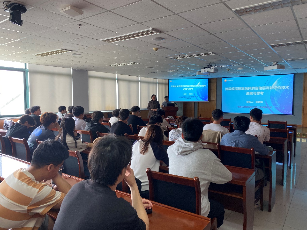 报告会上,蔺敬旗总地质师介绍了目前全球及中国深层-超深层碎屑岩油气勘探现状,提出了深层-超深层储层特征与形成机制,构造变形与地质力学、岩石力学机制、油气资源的特点与评价方法等科学问题,并针对深层超深层复杂的工程问题,即高温高压测井装备的研发提出了自己的见解。最后以新疆准噶尔盆地南缘为例,总结了准噶尔盆地超深层储层测井评价难题,从4个方面说明了测井面临的挑战,鼓励师生潜心钻研、为深层超深层测井评价贡献力量。会后MG冰球官网师生与蔺总展开了热烈讨论。