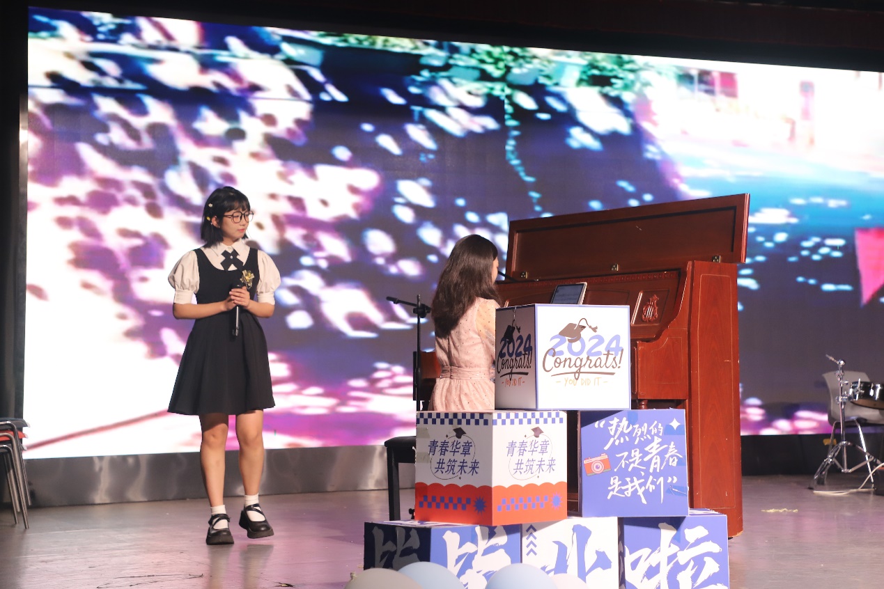 在晚会最紧张刺激的抽奖环节和游戏环节,“抢凳子”时师生踊跃参与,现场气氛热烈,同学们也获得了学院定制纪念品。牛庆玮、郑珊珊分别上台抽奖,为同学们送上祝福。牛庆玮祝贺同学们圆满完成学业,勉励大家永葆初心,传承弘扬勘探精神,把尖兵风采带到祖国的四面八方,欢迎同学们毕业后常回母院,学院也将永远做大家的坚强后盾。