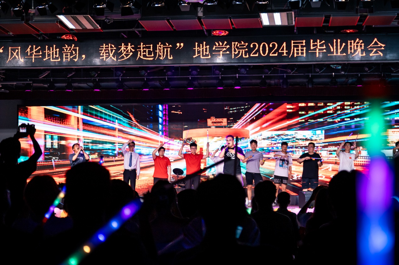 晚会在地物2001班与学校传统武术协会带来的武术表演拉开序幕,当神气十足的舞狮亮出“勘探报国,我辈先行”的标语时,瞬间燃起了全场氛围;在欢呼与喝彩中,由林姝含、邢伯申等人带来的毕业歌曲串烧带同学们回顾大学时光的点滴;SM广场舞女团带来的舞蹈《Supernova》激情澎湃,活力四射,赢得热烈掌声;2020级本科生班长团支书、田治康、乌达木带来的歌曲《牧马城市》将观众带入一个充满希望和激情的世界,激励毕业生勇敢面对生活中的挑战。