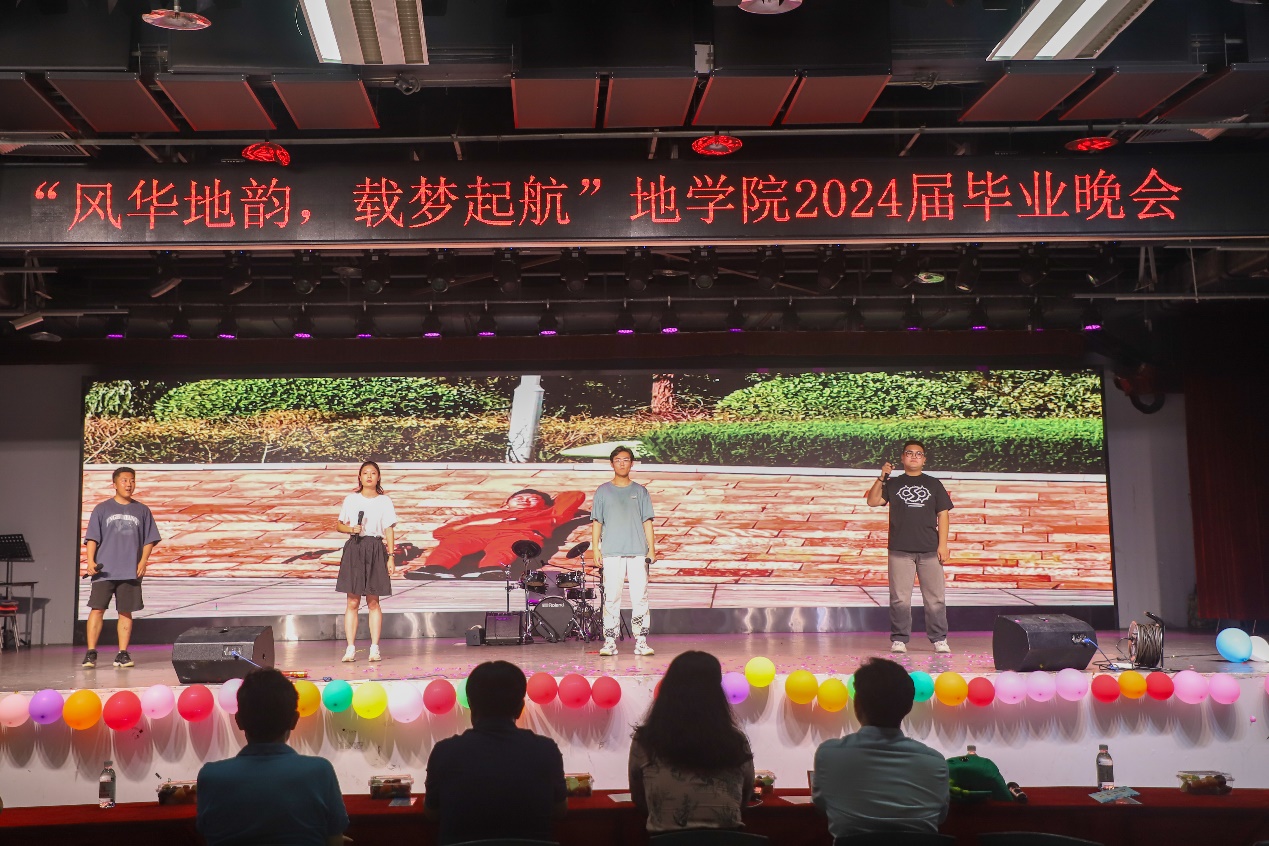6月22日晚,学院2024届“风华地韵,载梦起航”毕业晚会在唐岛湾三楼多功能厅举办。学院党委书记牛庆玮,党委副书记郑珊珊,资源系党支部书记、系主任张立强,地质系主任吴孔友,测井系党支部书记谭宝海,班主任代表杜启振,学院学生工作队伍以及全体2024届毕业生参加晚会。毕业晚会由学院教职工、2024届毕业生、艺术团等带来精彩纷呈的节目,毕业班辅导员徐明权、张艳芳,毕业生王圣钧、张泽宇主持。