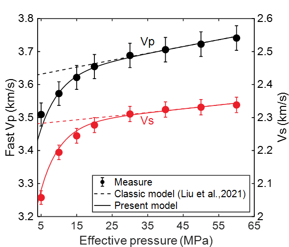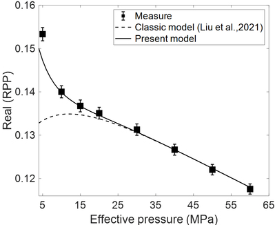 针对上述问题,研究团队聚焦饱和多孔油气储层,考虑有效应力对岩石孔隙结构及弹性参数的非线性作用,在“小扰动叠加大应变”假设下提出了非线性双孔声弹模型,解释了全局波致流体流动引起的弹性波能量耗散,实测岩石速度数据初步说明了所建模型的有效性以及较经典线性声弹模型的优势。基于非线性双孔声弹模型,构建了考虑储层界面间流体流动的广义边界条件,借助亥姆霍兹位移分解定理,推导了饱和双孔介质界面处地震反射系数精确方程,充分分析了有效压力、孔隙流体类型以及地层界面类型等关键因素对地震AVO特征以及地震响应的影响。本研究所建岩石物理模型以及地震反射特征方程为后续深层油气储层叠前地震反演方法研究提供了一定的理论及方程基础。