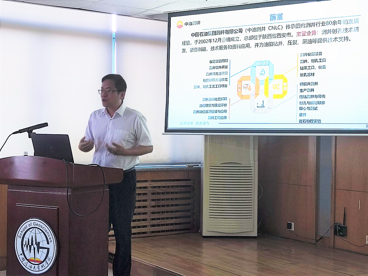 9月7日,中国石油集团测井有限公司首席专家周军受邀做客地学讲坛283讲,为学院师生作题为“测井智能化现状及展望”的学术报告,MG冰球突破官网网站副院长苏远大主持报告。