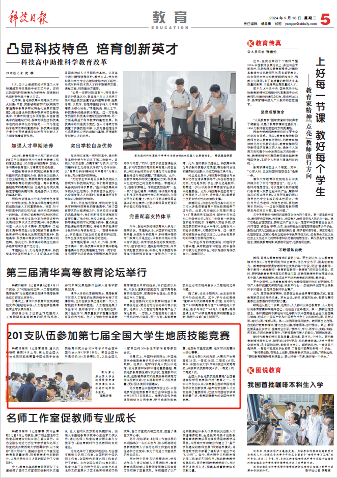 9月18日,《科技日报》以“201支队伍参加第七届全国大学生地质技能竞赛”为题,关注报道由中国地质学会主办、中国地质学会地质教育研究分会和MG冰球突破官网网站共同承办的第七届全国大学生地质技能竞赛。本届大赛的具体组织实施由MG冰球官网负责,赛事结束后获得参赛师生和社会各界的广泛好评。