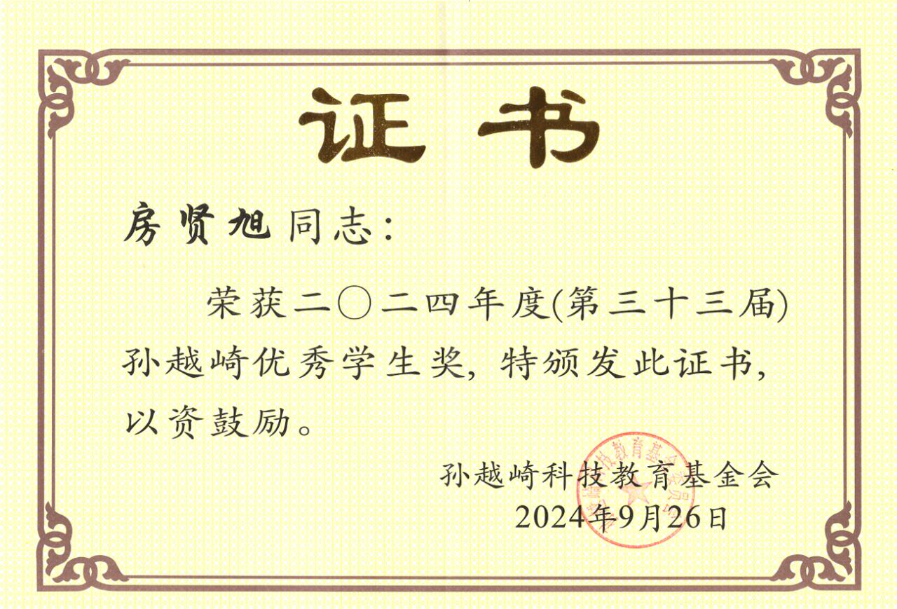 房贤旭,MG冰球突破官网网站2022级硕士研究生,硕士师从马存飞副教授,2024年9月硕博连读,博士师从操应长、葸克来教授。参与国家自然科学基金及企事业单位委托项目3项,在SCI二区、三区等石油地学领域国际知名期刊发表论文3篇,参加国际沉积学大会、全国沉积学大会、青年地学论坛等国内外学术会议并作口头汇报,荣获“优秀报告论文”1次。先后担任兼职辅导员、朋辈导师、党支部副书记、班长等学生干部职务,2024年硕士研究生综测排名年级第一,荣获“山东省优秀毕业生”“优秀研究生”“优秀研究生干部”“优秀共青团员”“优秀共青团干部”“优秀学生党员”等荣誉称号。孙越崎能源科学技术奖是经国家科技奖励办公室批准的正式奖项,是首批获准登记设立的26项社会力量办奖的奖项之一,包括孙越崎能源大奖、青年科技奖、优秀学生奖、家乡教育奖。该奖是为了纪念当代工矿泰斗孙越崎先生70多年来为中国工矿事业作出的突出贡献而设立的,其目的是支持和资助能源科技教育活动、奖励有突出贡献的科技人员、培养科技人才、促进中国能源科技教育事业的繁荣和后备人才的成长,以实现孙越崎先生发展科技教育、振兴中华的宏伟愿望。