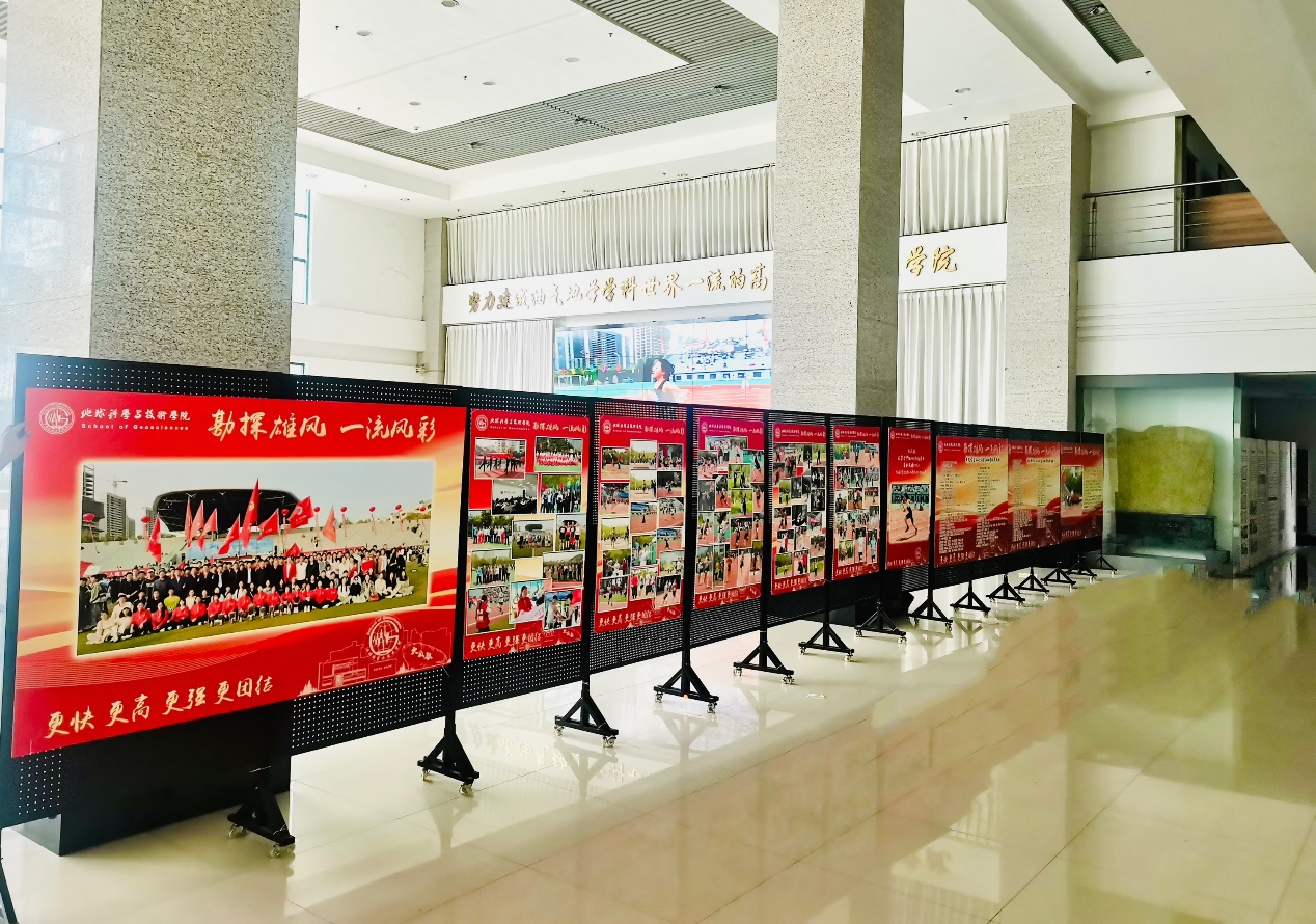 在运用线上新媒体呈现MG冰球官网师生征战校运会事迹的同时,线下联动,在工科楼C座一楼大厅策划了“勘探雄风,一流风彩”的专题展,通过大气的设计、丰富的图文资料,生动诠释了“求实、尖兵、协作、奉献”的勘探精神。研究生运动员徐旺第一时间参观了专题站,“学院不仅在赛场上为我们摇旗呐喊,赛事结束后重视宣传师生拼搏成果,让我们所有运动员感觉更有劲儿”。