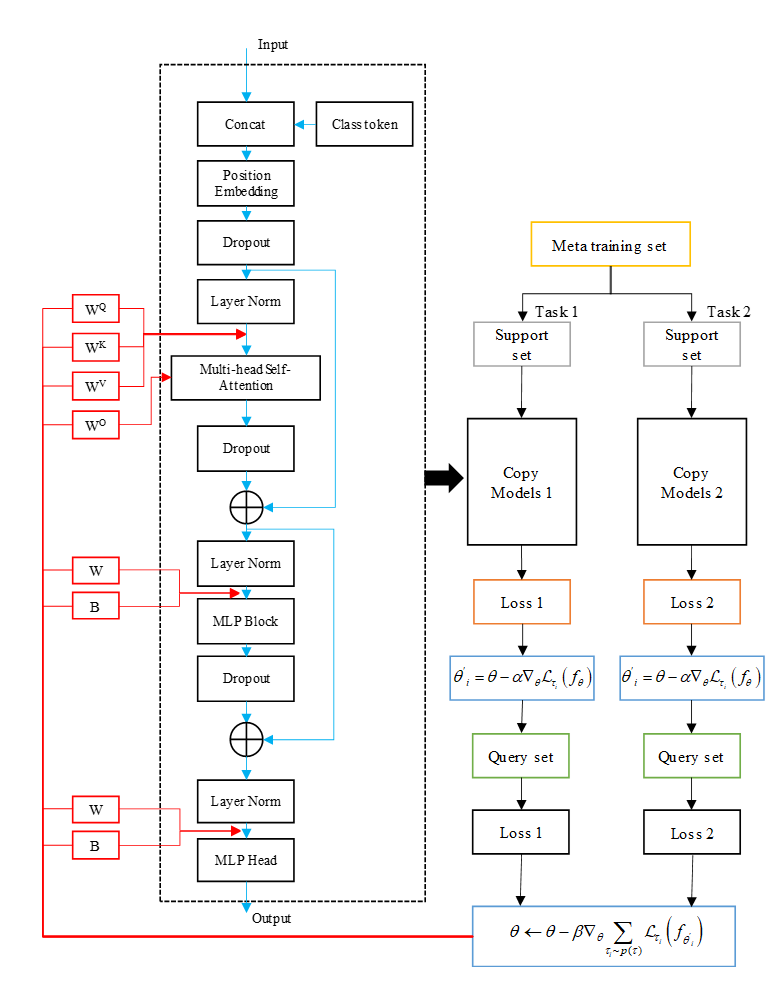 随着地质勘探和油气开发的不断进展,流体预测的改进变得愈加重要。钻井数据通常受到样本数量有限的影响,这使得传统机器学习方法无法充分利用这些数据。因此,需要一种更具适应性和通用性的方法。针对这个问题,我们提出了Mta-ViT(视觉变换器)方法——一个将元学习与ViT相结合的新颖框架。元学习的参数更新机制提升了模型在不同任务中辨别模式和细微差别的能力,而ViT在元学习的驱动下,能够更好地理解地质勘探特征,提高流体检测的效率。支持集提供了元学习的洞见,而查询集则评估模型的泛化能力。ViT在识别地下流体方面表现优异。元学习通过复制多样的任务和数据分布,增强了模型的适应性。同时,变换器的自注意力机制能够捕捉传统长短期记忆(LSTM)难以处理的远程依赖关系。它们的残差连接和层归一化也解决了梯度问题,简化了训练过程。因此,我们的模型能够有效解释复杂的钻井数据特征,提高预测的准确性和适应性。在使用小样本钻井数据集进行的实验中,我们将Meta-ViT与其他模型进行了比较。结果显示,在有限数据情况下,我们的模型表现优越,证明了其在流体分类任务中的有效性和重要性。总体而言,我们提出的解决方案在涉及小样本钻井数据的流体分类任务中表现出色,利用可用样本增强了模型的适应性和预测性能。