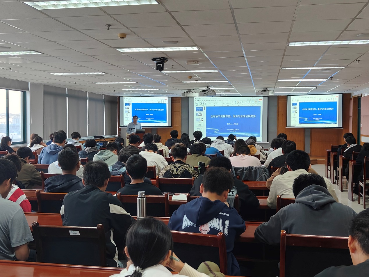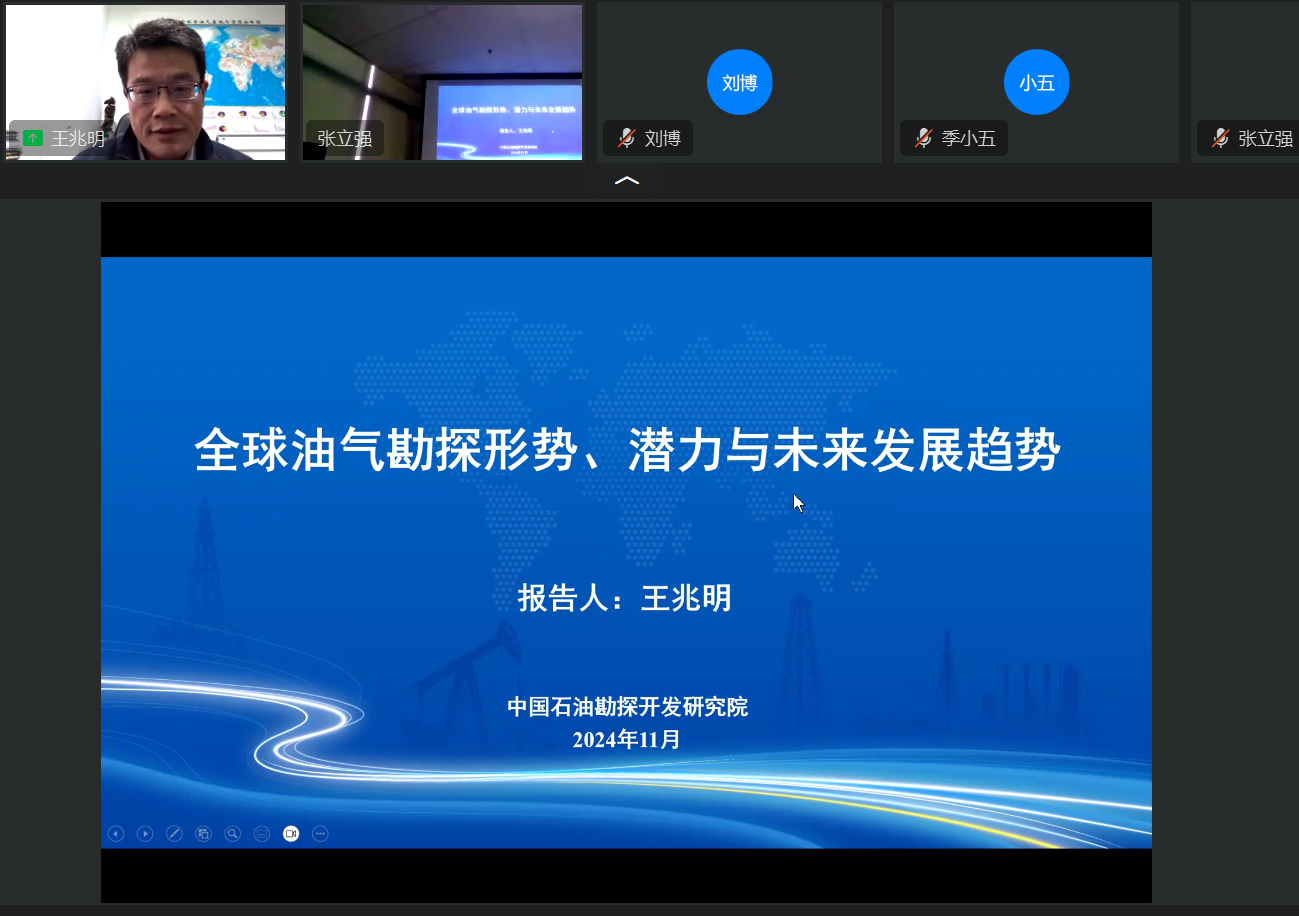 2024年11月15日下午,教育部“油气田开发地质课程”虚拟教研室、全国高校“双带头人”教师党支部书记工作室、山东省示范性基层教学组织、MG冰球突破官网网站在工科C楼757会议室举办全球油气勘探形势专题讲座。本次讲座特邀中国石油勘探开发研究院油气资源战略选区企业高级技术专家王兆明博士,作题为“全球油气勘探形势、潜力与未来发展趋势”的学术报告,来自MG冰球突破官网网站、中国矿业大学、山东科技大学等高校教师、资源勘查工程专业本科生以及研究生共130余人参加了线上、线下会议,虚拟教研室负责人张立强教授主持会议。