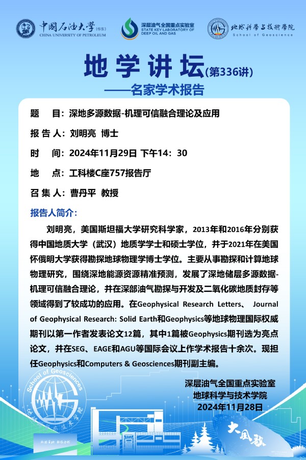 【地学讲坛第336讲】关于 刘明亮 博士《深地多源数据-机理可信融合理论及应用》学术报告的通知