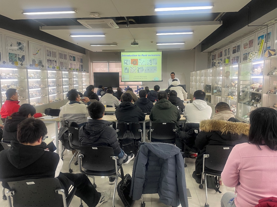2024年12月19日至2024年12月22日,学院GeoFriday第93期讲座于工科楼C地质博物馆成功举行。王淼特任副教授邀请来自智利大学的Daniel Moncada博士为MG冰球官网研究生讲授了《Introduction to fluid inclusions in ore-forming and hydrocarbon systems》的短期课程。学院师生五十余人参加本次交流。