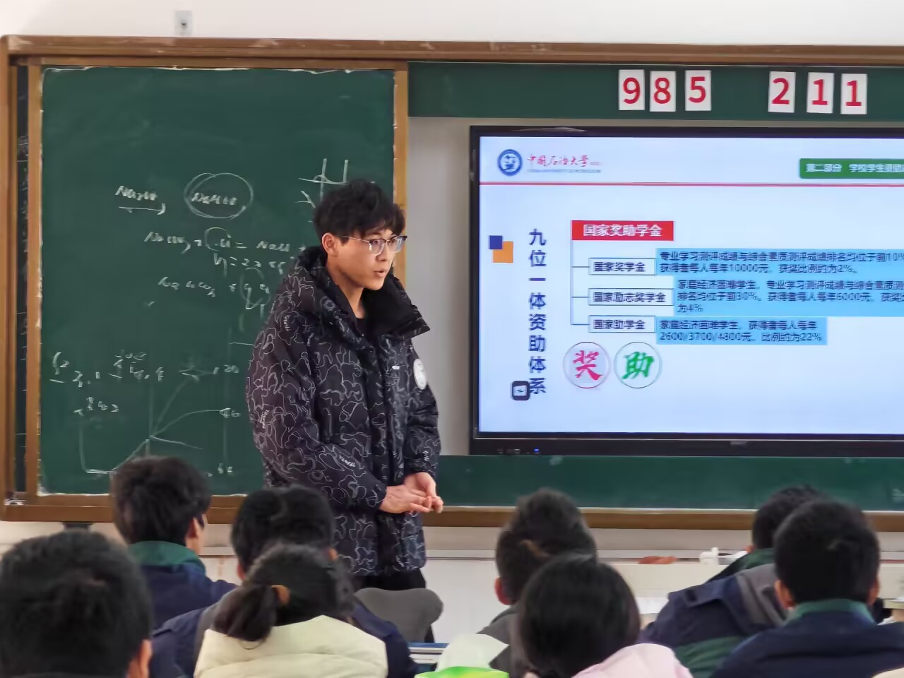“高中坐在台下听学长宣讲的我,从未想过今天能以资助受益者的身份站在这里。”地质2201班于安祺回到高中母校山东省招远第一中学,以“奖学金背后的成长密码”为切入点,通过视频、图片和实物展示,“云游”MG冰球突破官网网站校园。