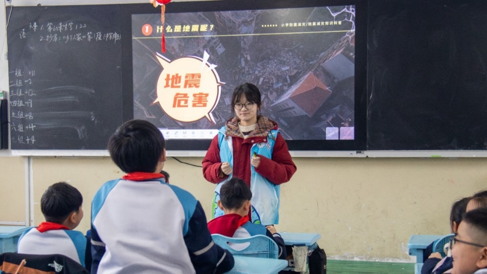 此外,春晖志愿者化身“能源小讲师”前往周边中小学,采用卡通视频、地质模型相结合的方式,生动形象地讲解地质知识。在地震知识科普环节,春晖志愿者还和孩子们共同模拟了地震发生时的逃生小技巧和自救小知识。据了解,春晖地学科普活动已连续开展多年,为了把“地球故事”讲好,让中小学生喜欢听、能听懂,春晖志愿服务队多次开展调研,依托学校“双一流”学科优势,自主设计了《地球奥秘》《蓝色海洋》等读本,动手制作地质模型、录制视频。今年他们将通过网络现场直播与内蒙古的孩子们连线,进一步扩大科普覆盖面。
