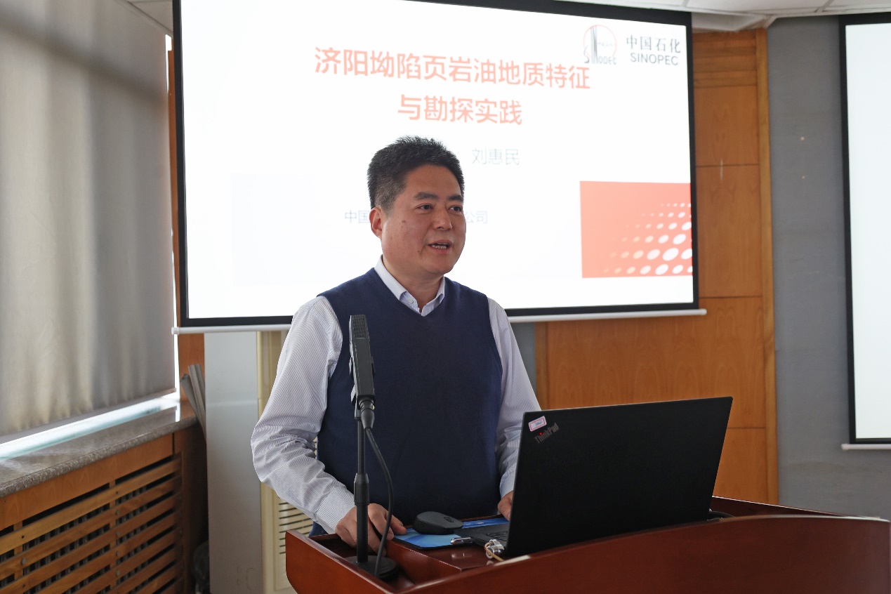 济阳坳陷页岩油资源量大,多洼陷、多口水平井的峰值日产油量超过百吨,初步实现了页岩油革命的良好开端。刘惠民总地质师系统讲述了济阳坳陷页岩油勘探开发历史、基本地质地化特征和取得的重大进展,重点对济阳坳陷页岩岩相划分与分布特征、孔缝结构与储集演化及页岩油富集可动与资源潜力方面进行详细阐述。最后刘惠民总地质师指出了济阳坳陷页岩油勘探存在的问题与攻关方向,为参会师生下一步学习和研究指明了方向。