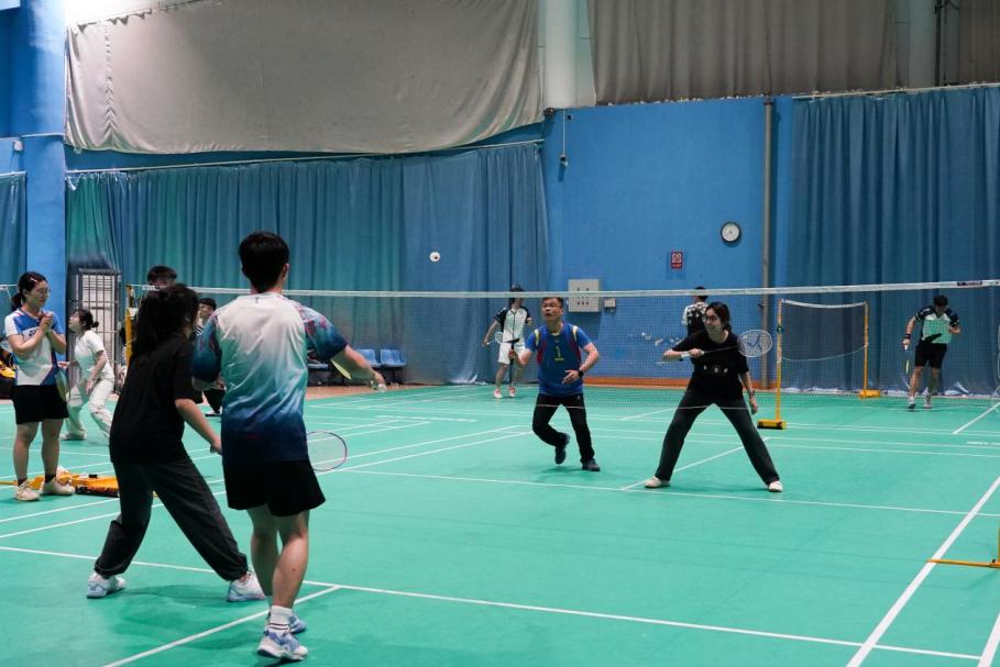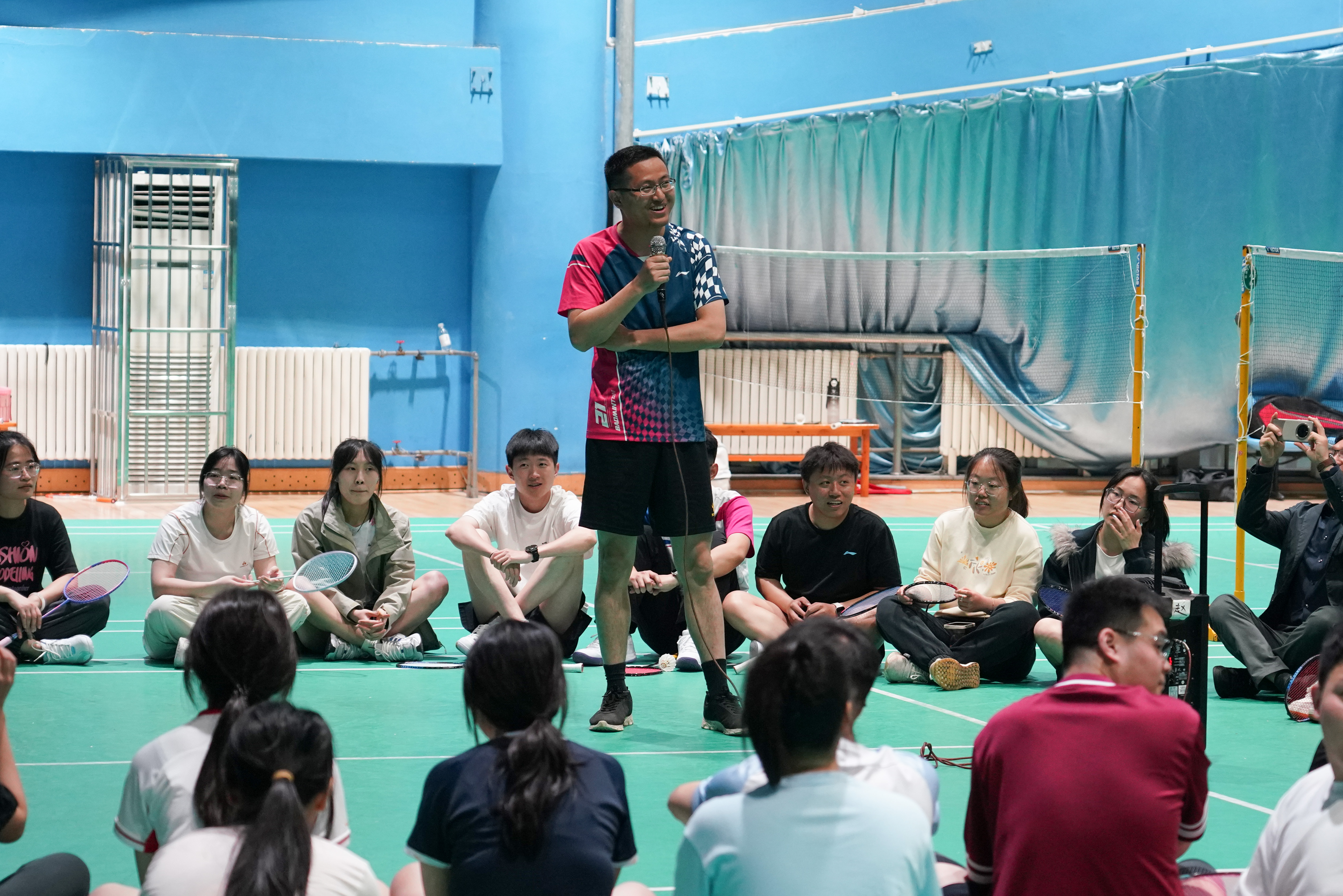 2025年5月8日由MG冰球突破官网网站研究生会承办的“导学齐羽”暨“师生勘探+”研究生羽毛球交流赛在唐岛湾校区体育馆副馆成功举办,校团委副书记姜士绅、学院副院长王冠、党委副书记郑珊珊、团委书记王力禾和50余名学院师生参与了此次活动。