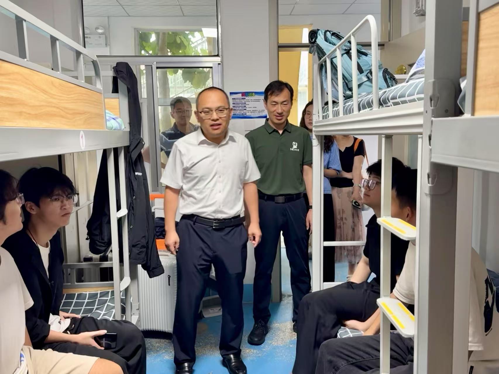 宗兆云在实习宿舍与学生交流