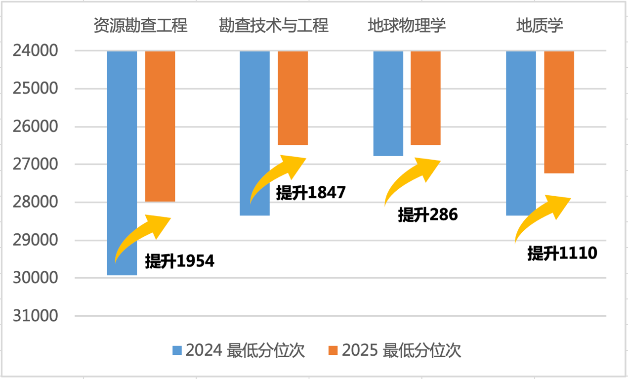 四川省高位次上升势头强劲,在去年最高位次7109的基础上继续突破,今年学校投档的最高位次和第二位次分别为5796和6688,且都以第一志愿被资源勘查工程(菁英班)录取。