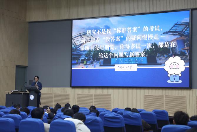 学院科研办公室李勇为2025级新生详细介绍学院研究生国际交流项目,展示了国际交流对拓宽学术视野、提升科研能力、增强跨文化沟通素养的重要作用,鼓励学生树立国际视野,积极争取优质的国际交流机会,在更广阔的学术舞台上展现地科学子的风采。