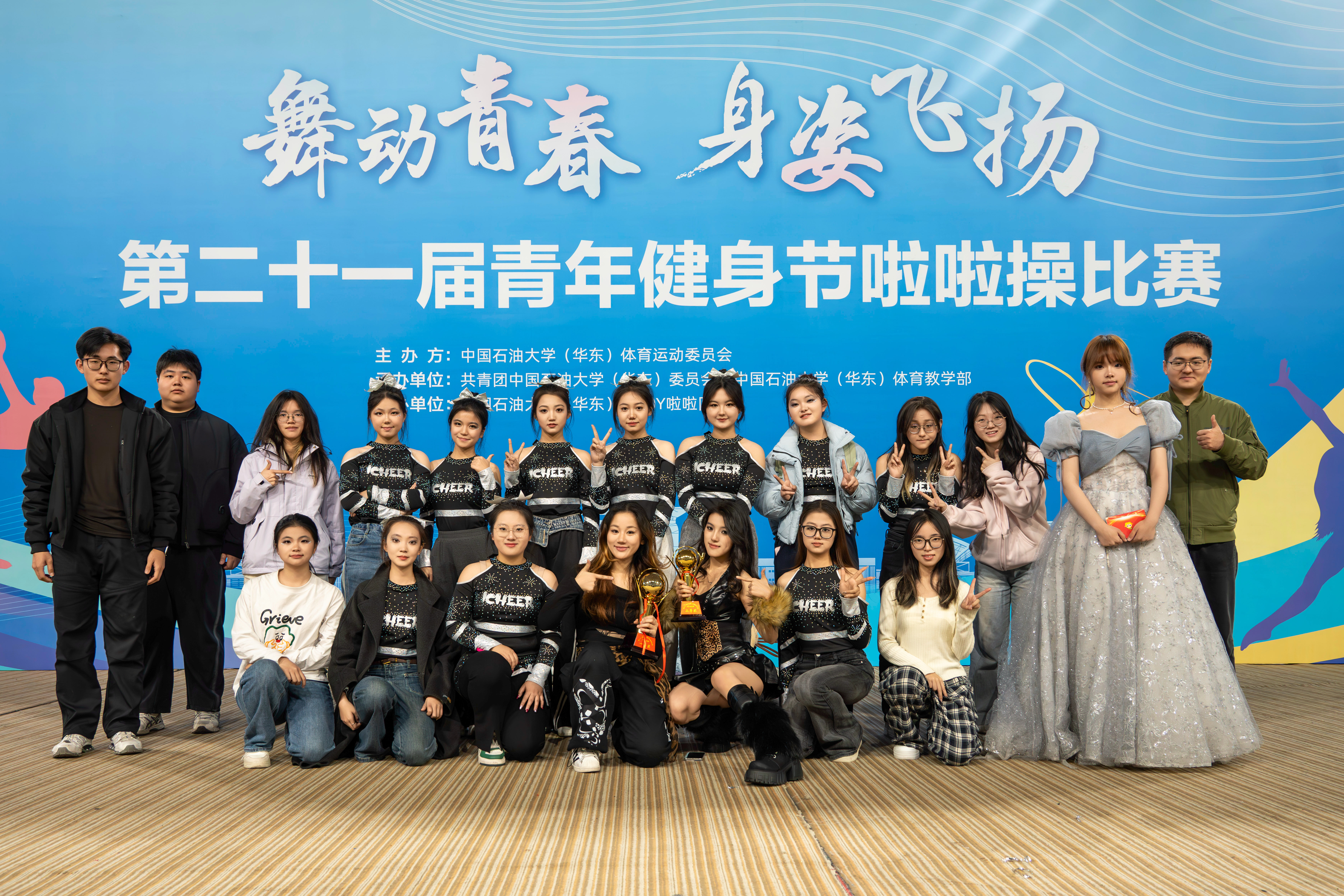 11月30日晚,由学校体育运动委员会主办、校团委和体育教学部承办的“舞动青春,身姿飞扬”第二十一届青年健身节啦啦操比赛于体育馆主馆举行。MG冰球官网啦啦操队的《Autobus》荣获集体舞比赛一等奖。