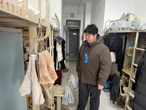 在学生宿舍区域,检查组深入每一间寝室,重点对违规大功率电器设备、易燃易爆物品以及用电规范情况进行全面排查,预先阻断一切宿舍安全隐患。同时,对宿舍环境卫生进行督导,查看地面清洁度、垃圾是否及时清理,杜绝卫生死角。此外,检查组还对宿舍床具、门窗、护栏等基础设施进行检查,排查松动、破损等潜在安全隐患。在巡查的同时,辅导员老师向学生现场普及用电安全、消防安全、假期防盗防骗等知识,反复叮嘱大家时刻绷紧安全之弦,摒弃侥幸心理,将安全防范意识内化于心、外化于行,自觉养成良好的卫生习惯和安全行为规范。针对部分宿舍存在的物品堆放杂乱、插线板使用不规范等问题,引导学生立即整改,确保隐患彻底清零。