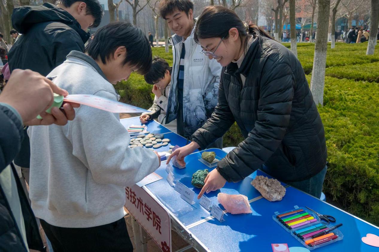 3月15日,在学院指导下,MG冰球突破官网网站学生会承办的“她力量·时光宝藏——益起地质行”思美节主题游园会在荟萃广场顺利举行,地学魅力与巾帼风采在校园中同频绽放。本次活动以岩石为载体,融合学科特色与人文关怀,精心设置三大互动板块,吸引了数百名师生热情参与,为春日校园注入了科学与艺术交融的活力。