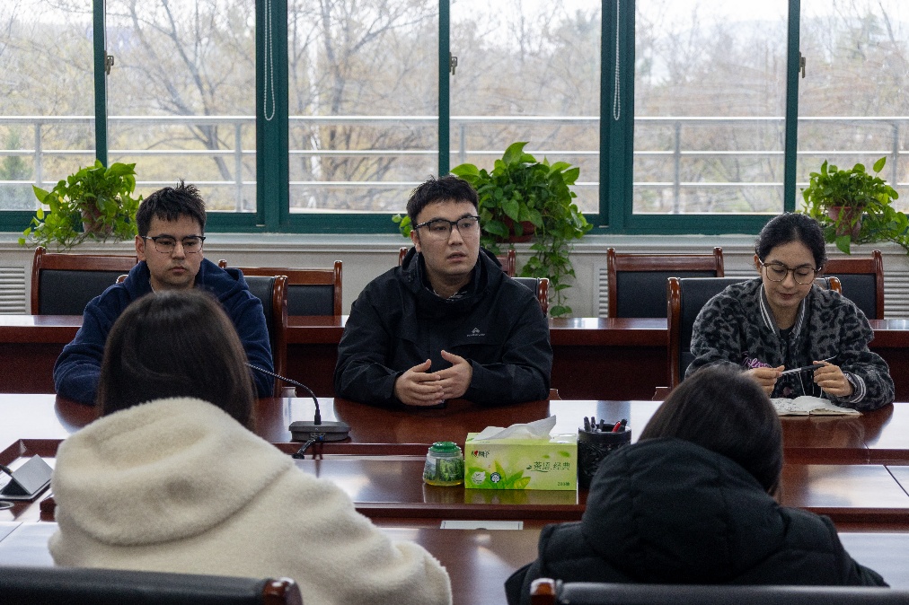 会议伊始,五名少数民族学生代表结合自身求学成长经历,依次进行交流分享。本科22级资源专业的白丽娜·吾布力艾山从四年学业准备、专业竞赛参与、院校信息获取等方面展开分享,强调少数民族学生更应当端正学习态度,坚信自身潜力,正视客观差距,主动弥补短板、迎头赶上。本科22级物探专业的艾克拜尔·玉山以“迷茫与坚定”为主题,详细复盘了自己的考研备战全过程。他建议要明确目标院校,制定行而有效的备考计划,为自己的选择持之以恒、不懈奋斗。本科22级物探专业的阿依波力·努尔巴哈提围绕当前就业形势、岗位选择等核心内容,重点梳理了毕业季求职时间线以及求职前的信息收集、简历丰富以及笔面备考情况。24级地质方向博士生古再丽努尔·艾尔肯和23级资源方向博士生艾孜买提·麦麦提分别就自己从本科到博士的学业发展历程,重点讲解了科研入门、学术积累和读博申请的相关经验,建议具有读研深造意愿的同学可以提前参与科研项目,培养科创思辨能力,积累长期研究成果,为未来的学术道路筑牢根基。